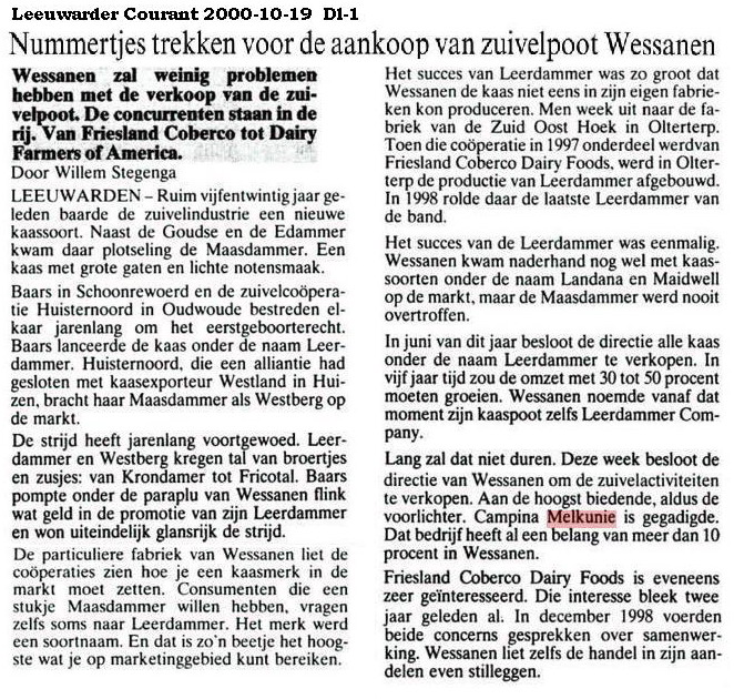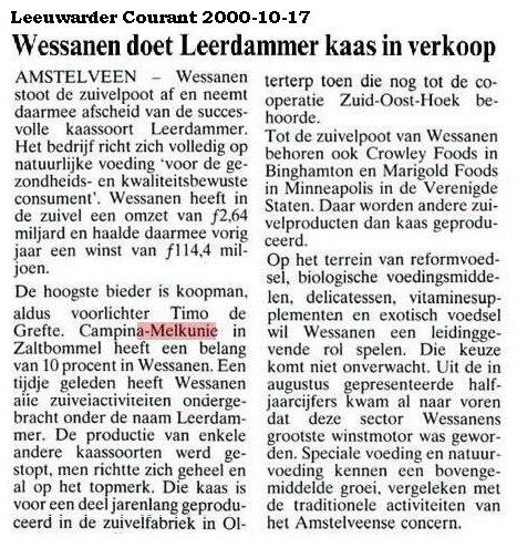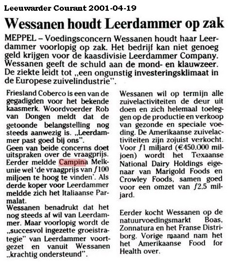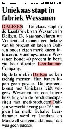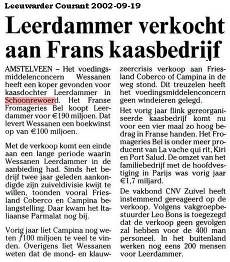 * 2002 ‘Leerdammer’ verkocht aan Bel (Frankrijk)